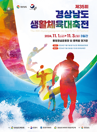 통영시에서 치러지는 제35회 경상남도생활체육대축전의 엠블럼은 경상남도의 첫 이니셜인 G와 통영시의 첫 이니셜 T, 통영바다의 청정함과 생동감을 생활체육대축전의 이미지에 맞게 표한 것으로 통영바다를 배경으로 두 팔 벌려 환호하는 경남도민과 통영시민의 이미지를 통해 경남도민이 단결과 화합, 희망과 행복의 의미를 담아내며 경상남도의 밝은 미래비전을 상징하며 체전의 성공적인 개최의 의미를 담고 있습니다.